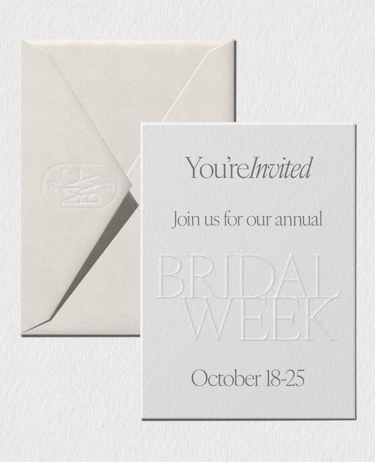 - Early access to all of the Bridal Week sales and incentives, as well as the best chance to purchase one of a kind pieces before the virtual sale begins.