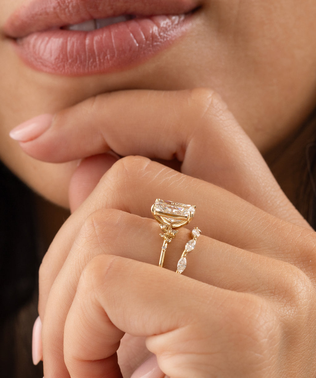 Our Made to Order Engagement Rings put you in the stone-sourcing seat. After choosing one of Melanie’s designs, you’ll have the opportunity to choose your own diamond. You’ll see a 360-degree view of the diamond as well as its cut, color, and clarity grade and a link to its certification. Don’t be intimidated! Our customer care team is made up of diamond experts who are here to help you pick the perfect stone for your chosen design.