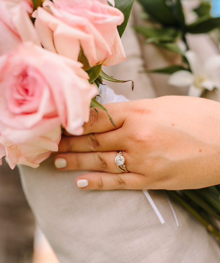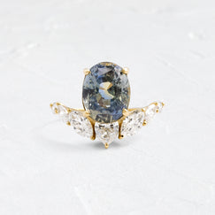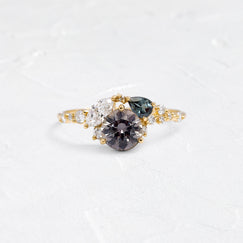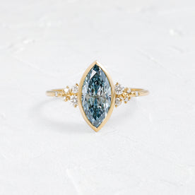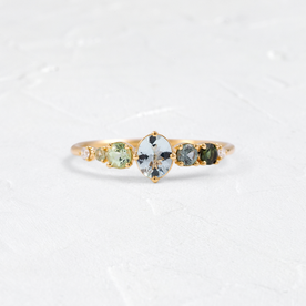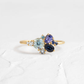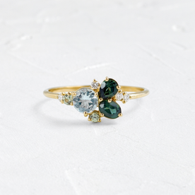 Serene blue stones catch the light like rolling waves. Blue comes in many shades, ranging from deep ocean to tropical teal to soft and stormy. Sapphire engagement rings, set with a classic deep blue stone, are perhaps the most iconic, but by no means the only way to capture shades of sea. For instance, blue diamond engagement rings sparkle slightly differently from deep, moody sapphires. The Clear Water Ring uses blue as an anchor, radiating in different shades and stones, taking you across the spectrum of blue.