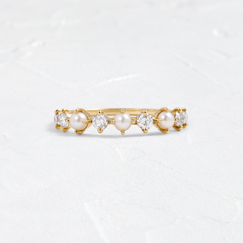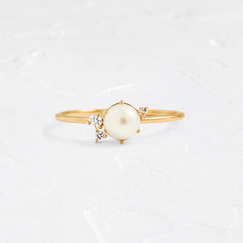 Unlike other gemstones, a pearl is not so much sparkling as it is luminous, much like an untouched stretch of snow glistening in the moonlight. Designer Melanie Casey loves to combine the white glow of a pearl with the bright sparkle of a white diamond, as their differences draw your attention to what sets them apart. A pearl ring in a ring stack adds a touch of luminous contrast, while pearl earrings remain a timeless classic. A pearl statement ring, like the Snowdrift Ring, Akoya Pearl, makes a snowy statement as an engagement ring or right-hand ring.