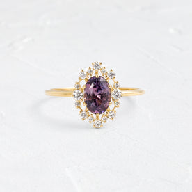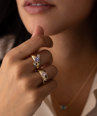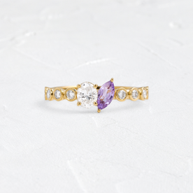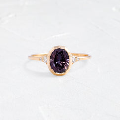 Purple gemstones capture a range rising on the horizon, from the palest of morning sky just before the sun rises to the deepest tone of a stony cliff face. A variety of gemstones can be purple, with the most notable and commonly used by designer Melanie Casey being sapphires. Each purple sapphire is truly unique, and while some appear more blue, others appear more pink. Stones like spinel and garnet can also appear in purple and are sometimes used in Melanie’s one of a kind or limited edition designs.