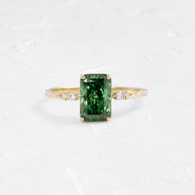 Like the resounding stillness of the deep forest, a green sapphire or gemstone brings verdant sparkle to any engagement ring or piece of fine jewelry. While blue sapphires are perhaps the best-known iteration, these diverse gemstones come in all kinds of colors, including deep, mossy greens. Just like any colored diamond, a green diamond captures the spectrum from deep evergreen to pale seedling. When paired with bright white diamonds, green gemstones evoke a canopy of leaves dappled with sunlight.