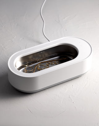 While the simplest jewelry cleaner is a soft-bristle toothbrush and some blue dish soap, an ultrasonic jewelry cleaner will take this basic approach to another level. This small machine packs a punch, removing dirt and grime from hard-to-reach places, including prongs, clasps, and earring posts. Perfect for at-home use, this machine uses no chemicals, only water, a touch of dish soap, and ultrasonic vibration to bring like-new sparkle to your fine jewelry.