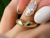 The Allusion Eternity Band has all the intricacies of an engagement ring in miniature. Lab-grown marquise cut diamonds are set east to west, almost completely obscuring the slender band of 14k gold or platinum. Each marquise cut diamond features two V-prongs that enhance the distinct sharp angles this diamond cut is famous for. The dynamic nature of the marquise cut diamond brings movement to the band, the stone widening and tapering over and over to create sparkling waves. Our experience setting intricate accent stones ensures that this eternity band is set with the strength of a future heirloom despite its weightless appearance. Founder Melanie Casey originally designed the Allusion Eternity Band in Diamond to pair with the Allusion Ring, 4.04ct. Lab-Grown Pink Diamond or the Allusion Ring, Marquise Cut, alongside the Allusion Band, a wedding stack with subtle repetition that hints at the beauty found in the perfect complement.