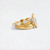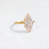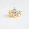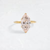 The Allusion Ring offers much more than meets the eye. A marquise cut pink diamond is set on a delicate band of 14k yellow gold, appearing to be a solitaire at first glance. The focal diamond is held in place by two V-prongs that enhance the distinct sharp angles of a marquise diamond. Hidden diamonds wrap wreath-like around the setting, adding sparkling brilliance to an often overlooked angle. The open bridge setting creates a pocket of negative space between the focal stone and your finger, allowing light to enter the stone from both the top and bottom, maximizing sparkle. Founder Melanie Casey originally designed the Allusion Ring to pair with the Allusion Band and Allusion Eternity Band in Diamond, a wedding stack with subtle repetition that hints at the beauty found in the perfect complement.