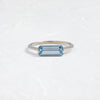 The Balladeer Ring is a solitaire unlike any other. An emerald cut blue diamond is set east to west in a raised closed basket setting on a delicate tapered razor band of 14k white gold. Designer Melanie Casey created something simultaneously modern, dramatic, and understated. This unique engagement ring draws attention to the step cuts of the stone by setting it at an unexpected angle, highlighting the hall of mirrors intrinsic to this diamond cut. As a solitaire, this design highlights our commitment to high-quality craftsmanship in the delicate taper of the razor band, the perfectly smooth gold edges, and the careful setting of the focal stone. With eye-catching design and attention to detail, the Balladeer Ring is as carefully composed as a sentimental ballad. This Balladeer Ring is one of a kind.