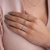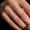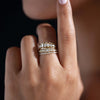 The Edison Collection evokes a spark of inspiration. Equal parts dramatic and whimsical, The Edison Band features twenty-nine round cut diamonds, thoughtfully and symmetrically scattered across a band in your choice of 14k gold or platinum. A larger diamond rests at the band’s center with smaller diamonds appearing to pulse as they grow and shrink along the curve of the delicate band. Smaller accents are set both above and below, radiating outward in an explosion of diamond. Each accent diamond floats, bringing a sense of weightlessness to a diamond-heavy composition. Our expertise with dynamic accent stones ensures that each diamond is set securely with the strength of a future heirloom despite their delicate links to the setting. Through diamond brilliance, the Edison Band captures a moment of innovation and the reverberations that echo in the afterglow.