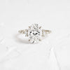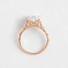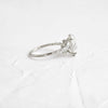 The Ensemble Ring creates a harmonious whole out of intricate pieces. An oval cut diamond of your choice is centered on a delicate band of 14k gold or platinum. Two marquise cut diamonds flank the focal stone, angled vertically with one point touching the band and the other touching the setting. Four round cut diamonds are set on either side of the focal stone, radiating off the band and backlighting the angled marquise diamonds. Three more round cut diamonds accent the band, spaced further and further apart like the quiet reverberations of the focal cluster’s bold diamond brilliance. Melanie Casey’s expertise with complex designs ensures that these intricately set accent diamonds are soundly set, never compromising strength despite their aerodynamic setting. With a carefully cultivated yet organic composition, the Ensemble Ring reminds you of the beauty found when all the pieces come together.