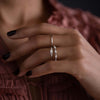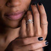 The Interwoven Band is proof that well-designed contrast makes for a stunning finish. This wedding or stacking band features alternating marquise and round cut diamonds in a pattern reminiscent of braiding or weaving. These diamonds are set into your choice of 14k gold or platinum band in either a demi style with five marquise diamonds and six round diamonds, or an eternity style in which the diamond count will vary depending on the size of the ring. Our dedication to structural excellence means that despite the dramatic tapers of this band, the impossibly delicate round diamond links maintain the strength of a future heirloom. The intentional divergence of this design creates a dynamic finish, diamonds rising and falling in a scalloped edge. The Interwoven Band represents all the beauty to be found when your life intertwines with another.