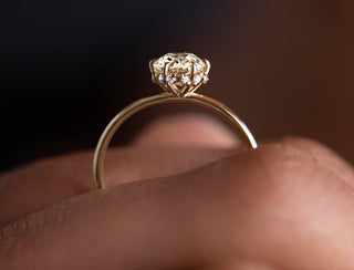 With a hidden halo, the Touchpoints Ring features a classic silhouette, intricate framework, and a touch of surprise. While appearing to be a solitaire ring at first glance, hidden diamonds wrap around this 0.7ct. diamond.