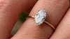 As subtle and striking as a whisper, our take on the iconic diamond solitaire engagement ring pays homage to tradition without sacrificing signature style. This version of our Whisper Ring features your choice of marquise cut diamond resting in an open-basket setting on a 14k gold or platinum band. An inconspicuous setting and delicate band cause the focal diamond to appear both striking and weightless. Tastefully unadorned, the high craftsmanship synonymous with Melanie Casey ensures that minimalism only emphasizes precision. With only the essential elements present, it’s apparent that attention to detail and meticulous artistry are inherent to our designs. Simplicity backed by integrity ensures that the focal stone is statement enough. Timeless, modest, and influential, the Whisper Ring leaves everything but the most necessary of details, unspoken.